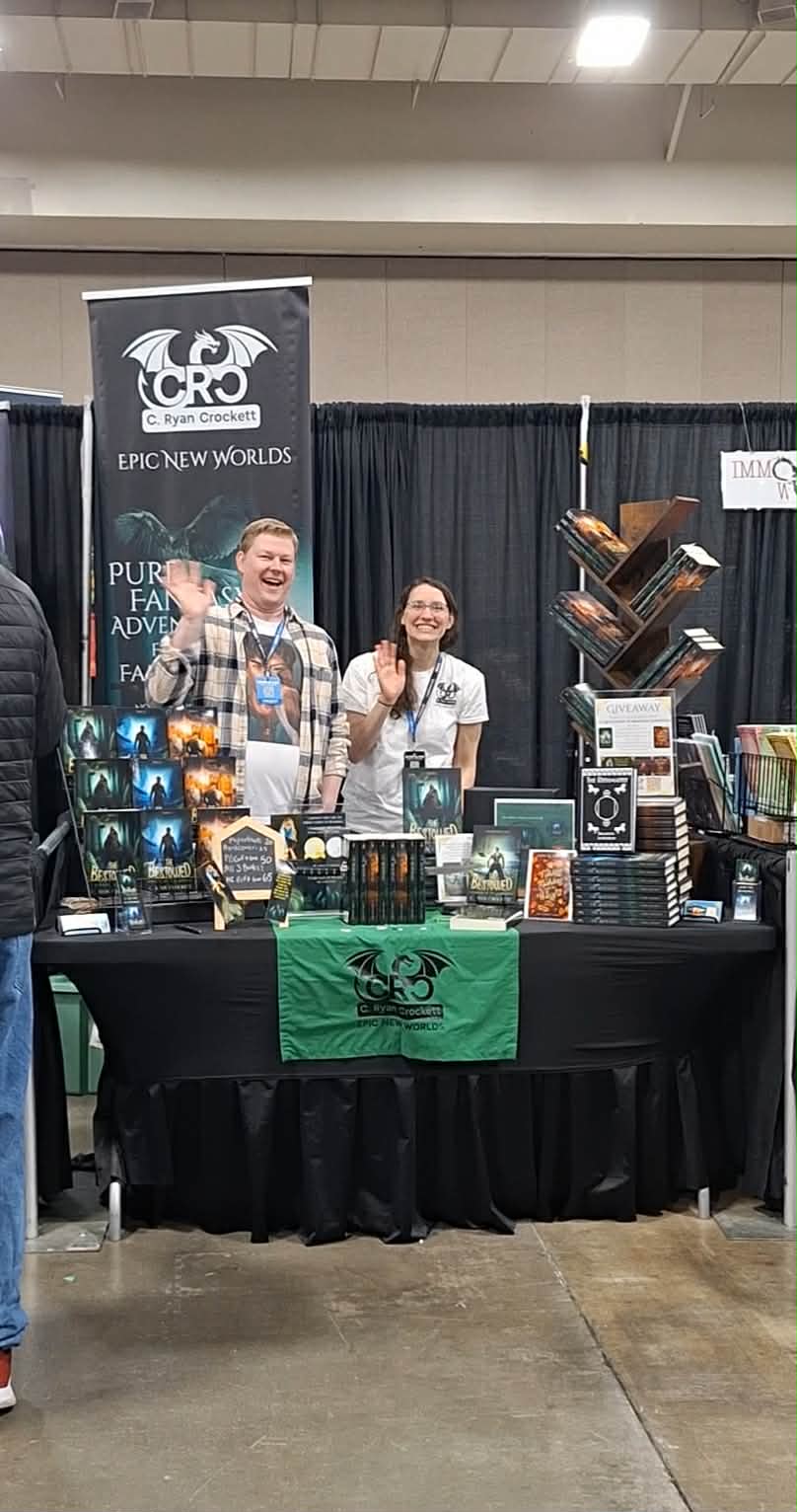 Hi, Anna again. I’m the one standing next to my best friend in flannel — Ryan Crockett. And yes, we are married and both writing! Look at all his hard work printed on paper! So proud of him.